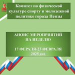 П Л А Н проведения Комитетом по физической культуре, спорту и молодежной политике города Пензы мероприятий в период с 17 по 23 февраля 2025 года.