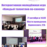 ✨ Внимание, школьники Пензы! ✨ 21 октября Молодёжный центр «Юность» приглашает тебя на интерактивную игру «Каждый талантлив по-своему»! Игра состоит из пяти творческих раундов, которые помогут тебе раскрыть свой потенциал и показать, что талантлив каждый по-своему. Не упусти возможность весело … Читать далее