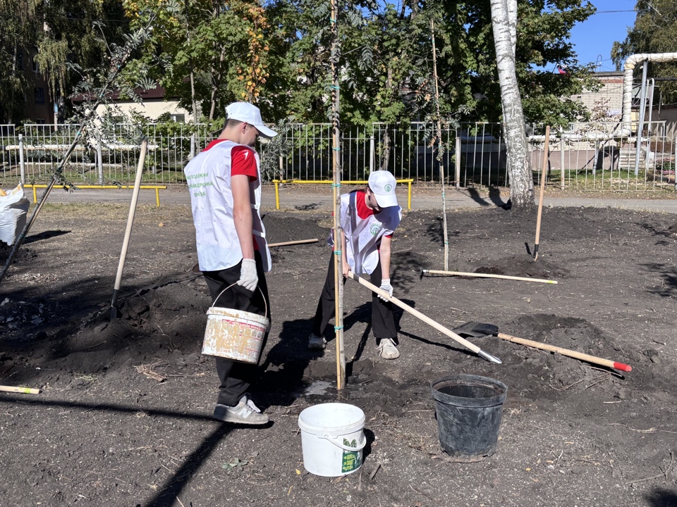 Специалисты молодёжного центра, студенты и учащиеся приняли участие в посадке деревьев по адресу: проспект Победы, 17.
