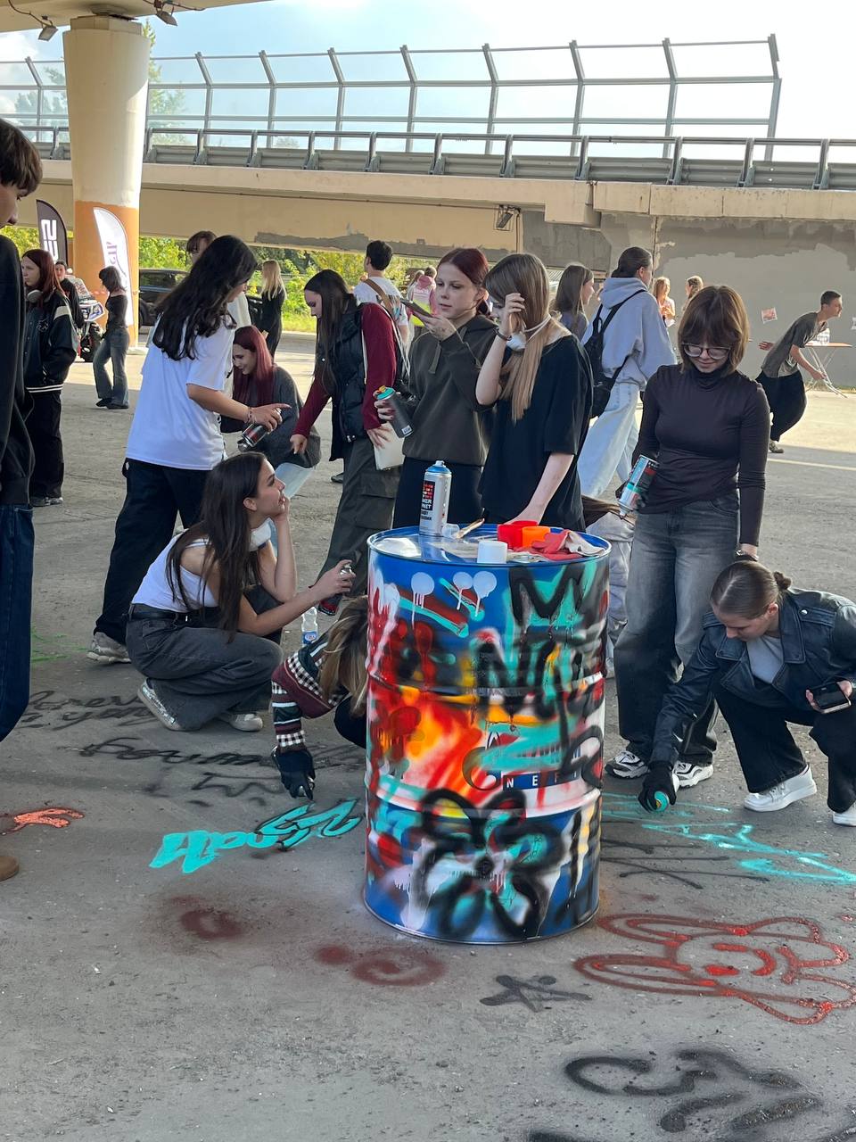 Мероприятие состоялось на площадке под мостом имени генерал-полковника В.П. Капашина, который и стал главной локацией для встречи и деятельности художников.
