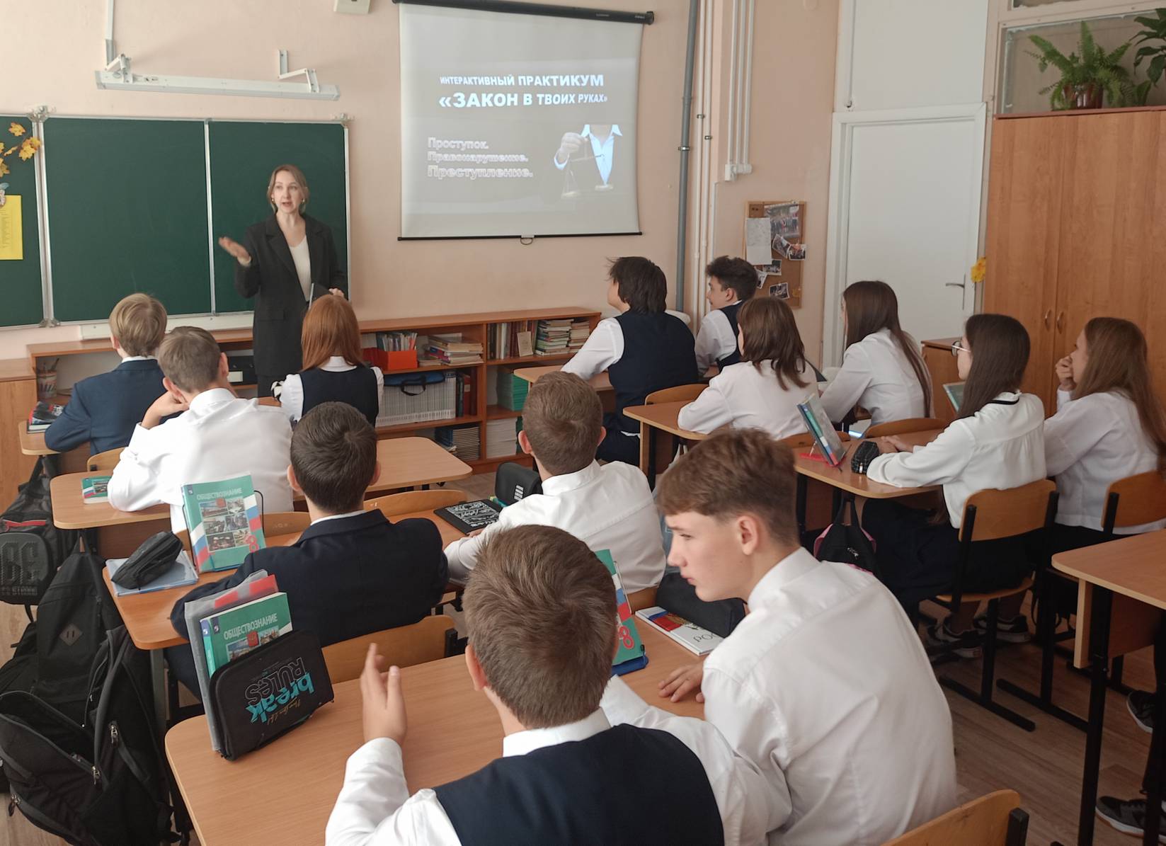 В ходе теоретической части школьникам рассказали, чем отличаются понятия «поступок», «правонарушение» и «преступление», а также обсудили виды юридической ответственности.