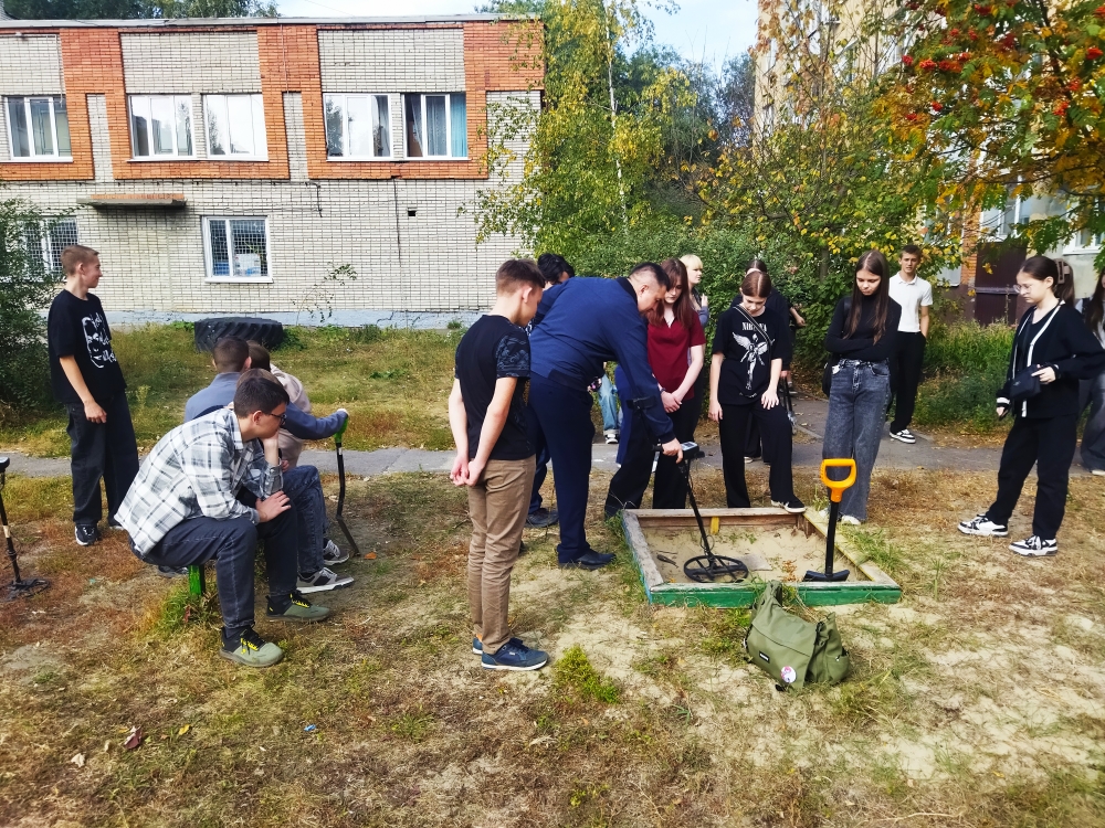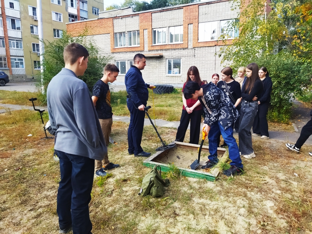 В ходе мастер-класса студентам продемонстрировали инструменты, используемые «связными военной истории» при проведении поисковых работ: ребятам рассказали об особенностях работы с металлоискателем, какие металлодетекторы используются для поиска артефактов войны и останков незахороненных бойцов, как на приборную разведку влияют свойства грунта, на какой местности предпочтительнее использовать щуп.