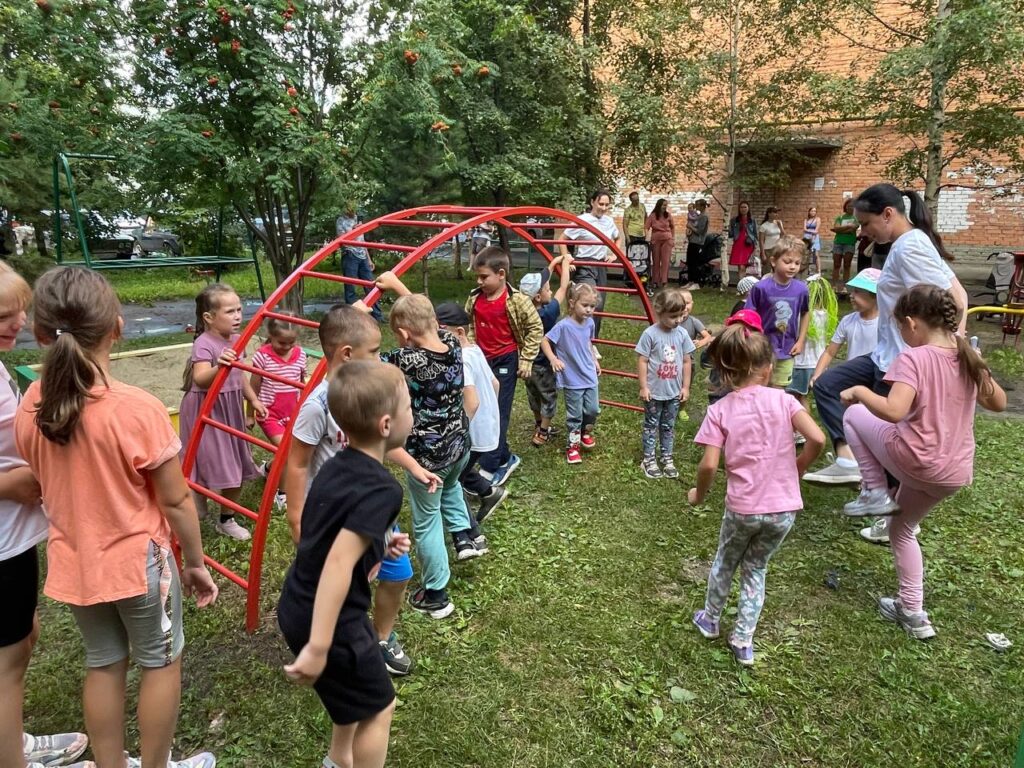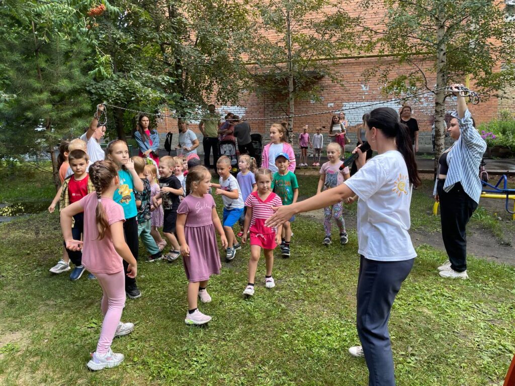 Дети и взрослые с удовольствием участвовали в любимых летних играх: «Кошки-мышки», «Музыкальный мяч», «Паровозик», «Остров дружбы» и танцевальных забавах.