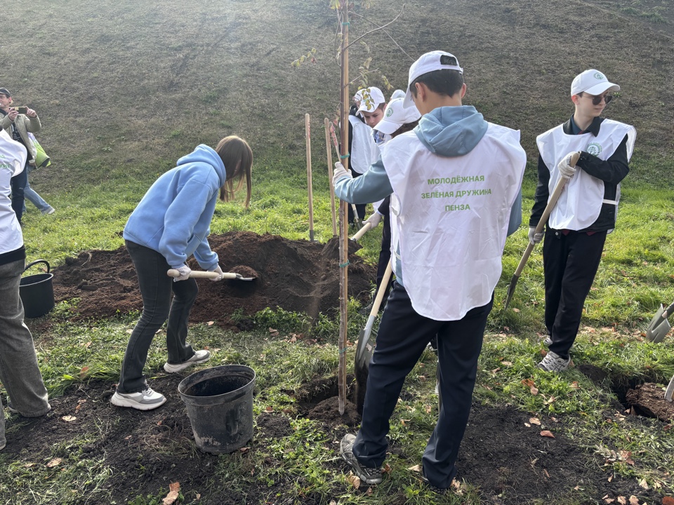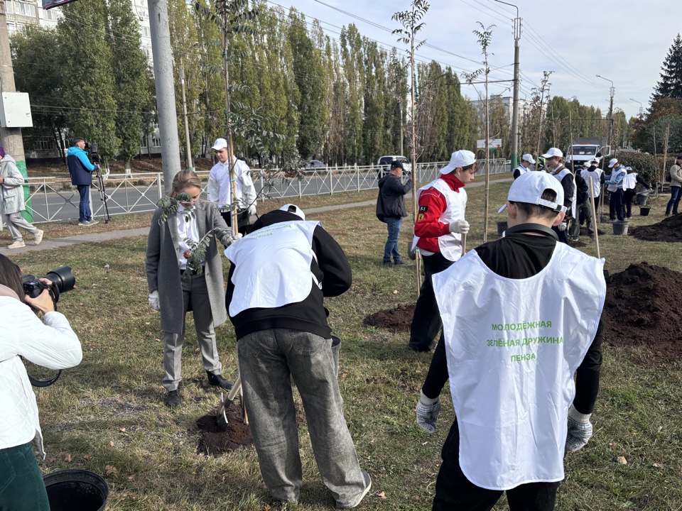 2 октября 2025 года состоялось очередное мероприятие по озеленению города Пензы. В рамках проекта «Молодёжная зелёная дружина» специалисты Молодёжного центра «Юность» совместно с учащимися МБОУ СОШ № 12 г. Пензы им. В.В. Тарасова, со студентами Пензенского колледжа современных технологий переработки и бизнеса и работниками МБУ «Пензавтодор» приняли участие в посадке деревьев по адресу: территория по адресу: ул. Большая Бугровка, 44.